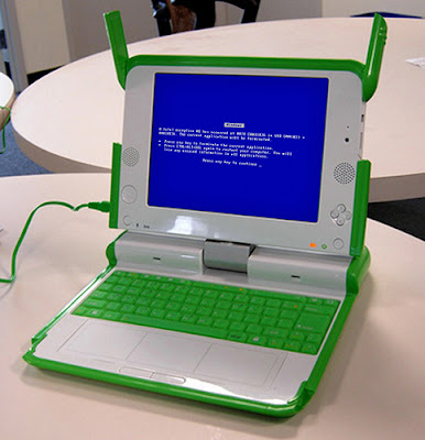 5/16/2008: Rumor has it OLPC may be releasing a windows version. Here's the photo from Tech Crunch. Click on the picture for the full story...and more interestingly, comments.