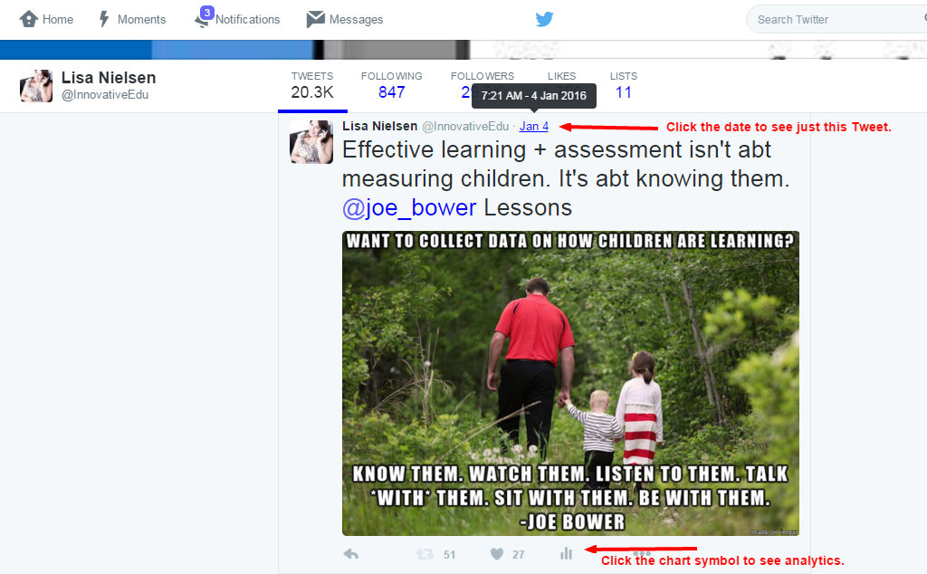 I recently shared my #EdCampNYC discussion on the "The Anatomy of a Killer Tweet." We came up with the five elements that make a Tweet killer. At the session, participants were challenged to write their own killer Tweet, but how would they know if they really nailed it? The answer: Twitter analytics. This is a free tool helps anyone who has had an account for at least 14 days receive details on tweets' engagement, clicks, retweets, favorites, replies, and more.