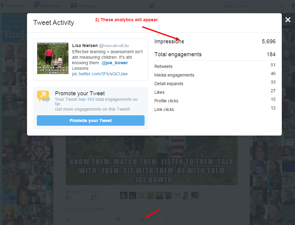 That's how to see how one Tweet is doing, but you can see how all your Tweets are doing with Twitter Analytics. Check out the picture below to see how.